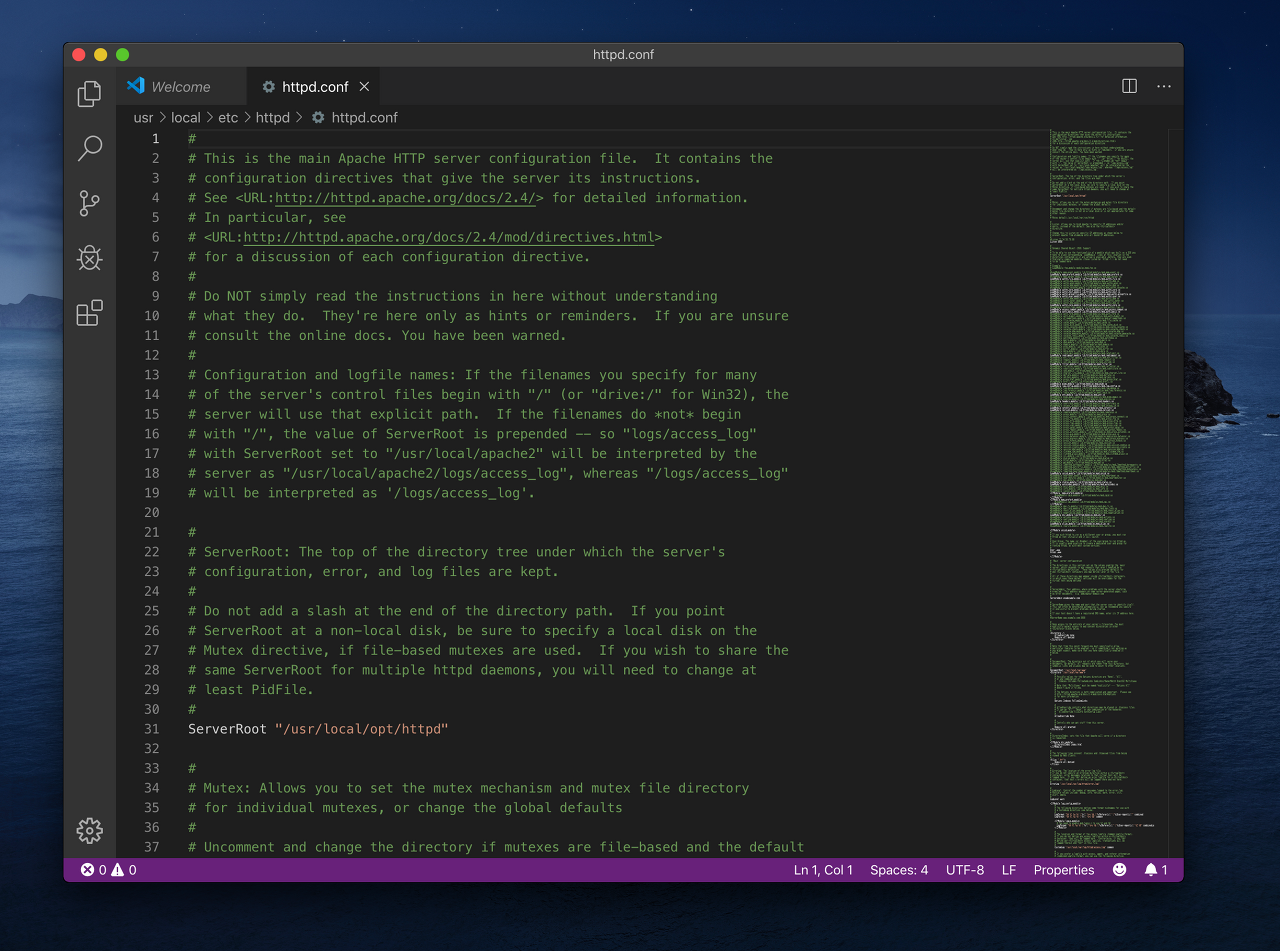 In past guides, I've always provided instructions to edit files using the default TextEdit application that comes pre-installed. However, this is not what I use myself as it's a terrible editor and when testing my guide for Catalina, I kept running into problems with encoding, finding line numbers etc. The better solution is to simply install a better editor. So please install the amazingly versatile yet, 100% free, Visual Studio Code. It's available on Mac, Windows, and Linux, but right now we only care about the mac version.