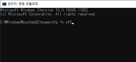 powercfg -h off 명령으로 삭제할 수 있다.