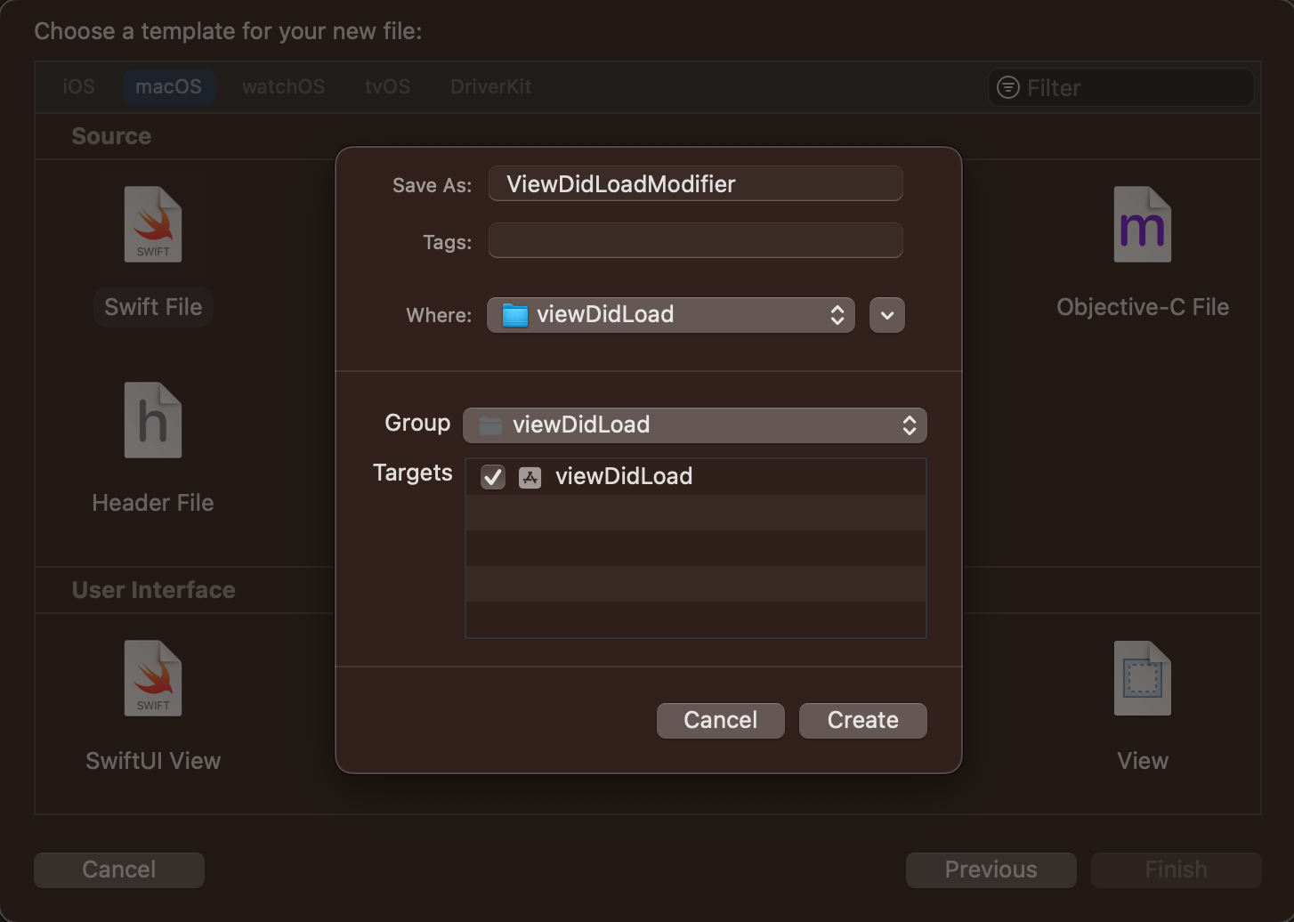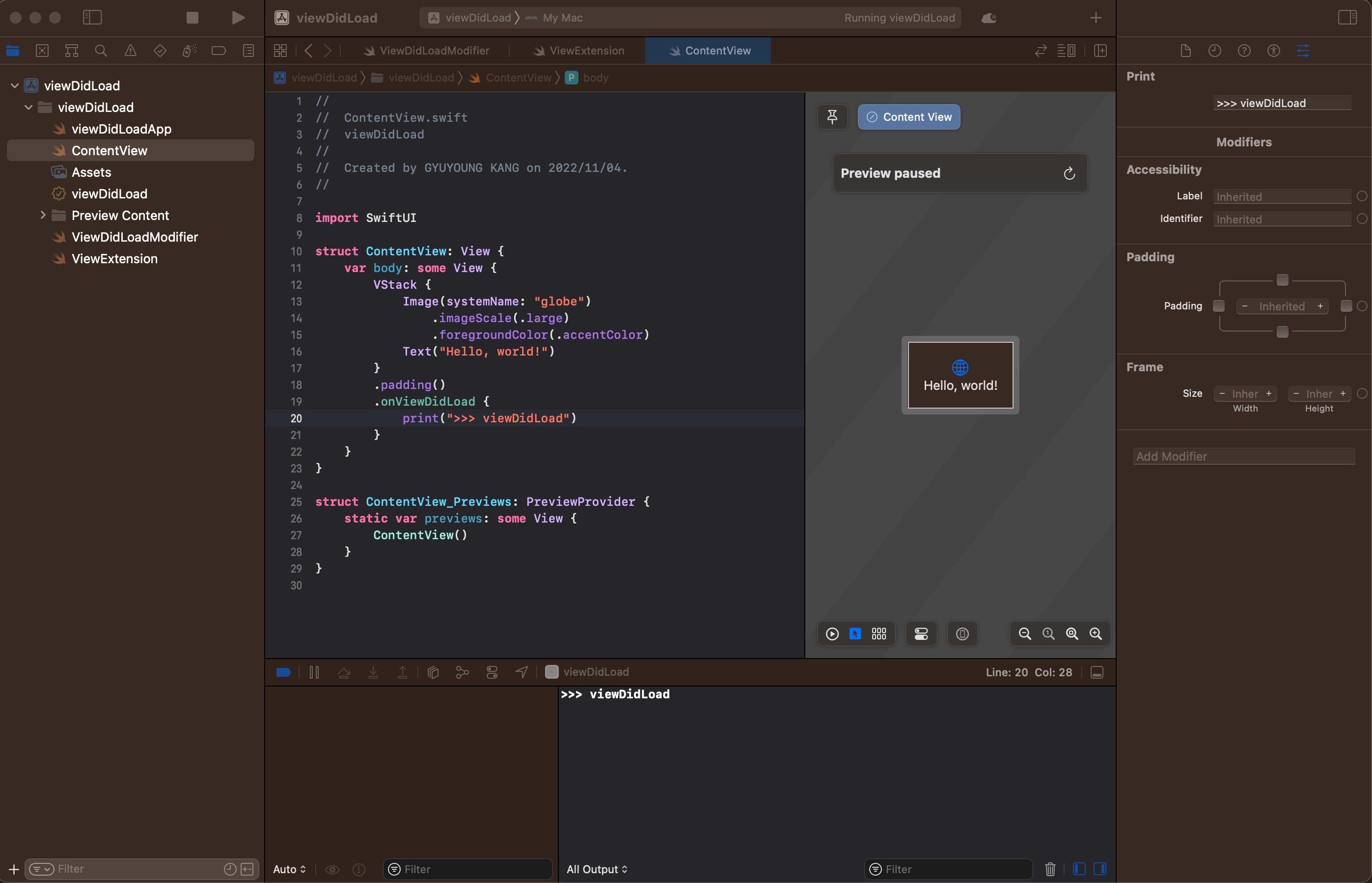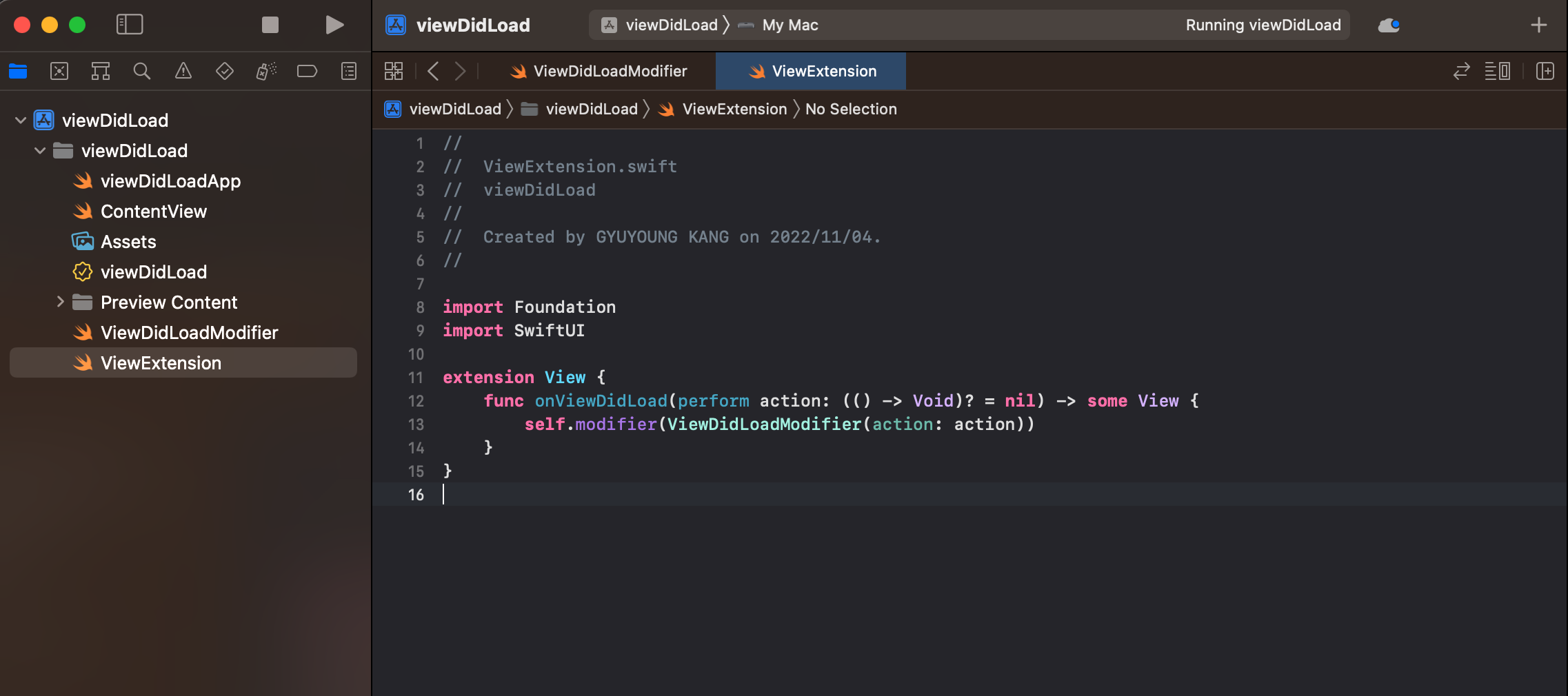 2. ViewModifier 를 가져와서 ViewDidLoadModifier 를 구성합니다.