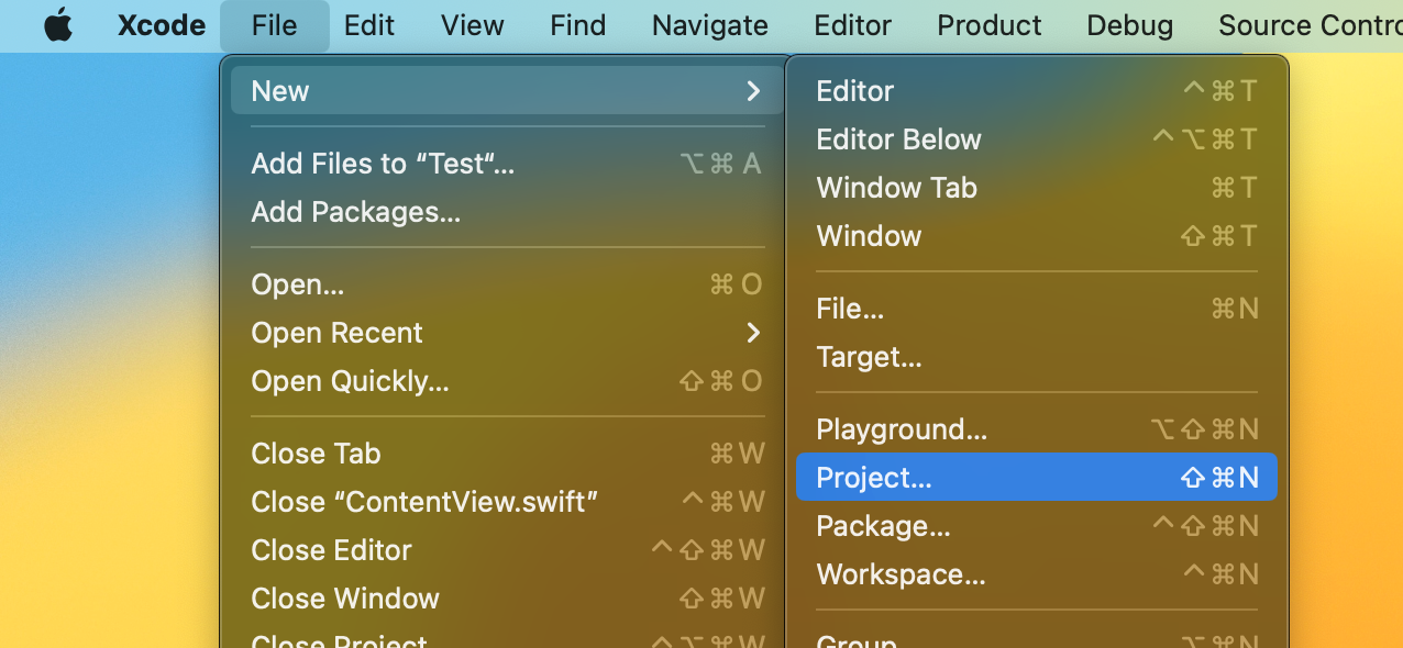 Xcode => File => New => Project 메뉴를 선택하여 새로운 프로젝트를 생성할 수 있어요.