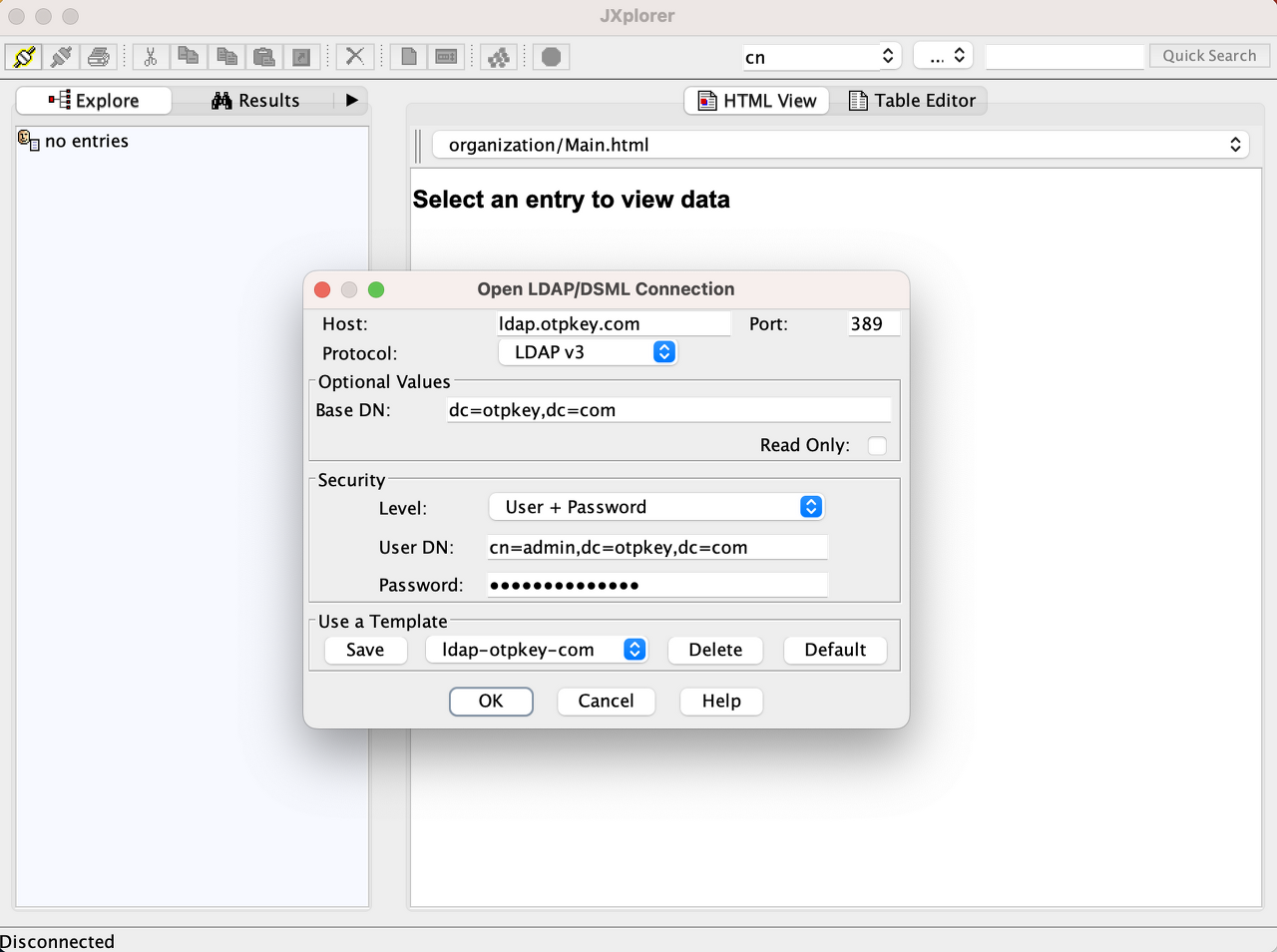 - Admin DN : cn=admin,dc=otpkey,dc=com