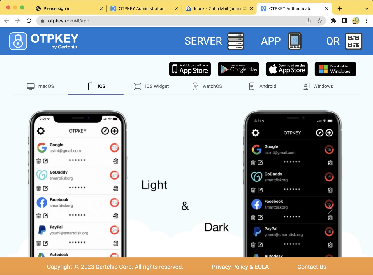 OTPKEY 인증앱 설치에 대한 자세한 사항은 https://otpkey.com/#/app 을 방문해 주시기 바랍니다.