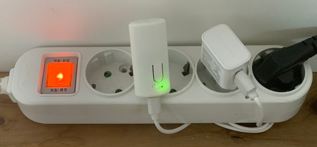 저는 저의 책상위에 이렇게 스마트폰 충전기를 이용해서 전원 꽂아서 켜 놓고 있습니다. 카페 등에서 작업하는 경우가 많고 특히 외부에서 모바일 상으로 작업하는 경우가 많아서 DDNS 를 필수적으로 사용하는 입장입니다. 저의 경우 유동 IP 를 3 개 쓰고 있거든요. 모두 KT 망인데 개발용으로 사용하다 보니 IP 가 종종 바뀝니다.